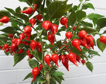 This plant produces a mass of chilli fruits. Used for garnishing salads pizza pasta tacos BBQ flatbreads and as an appetizer. Matures from yellowish green to orange to bright red.
